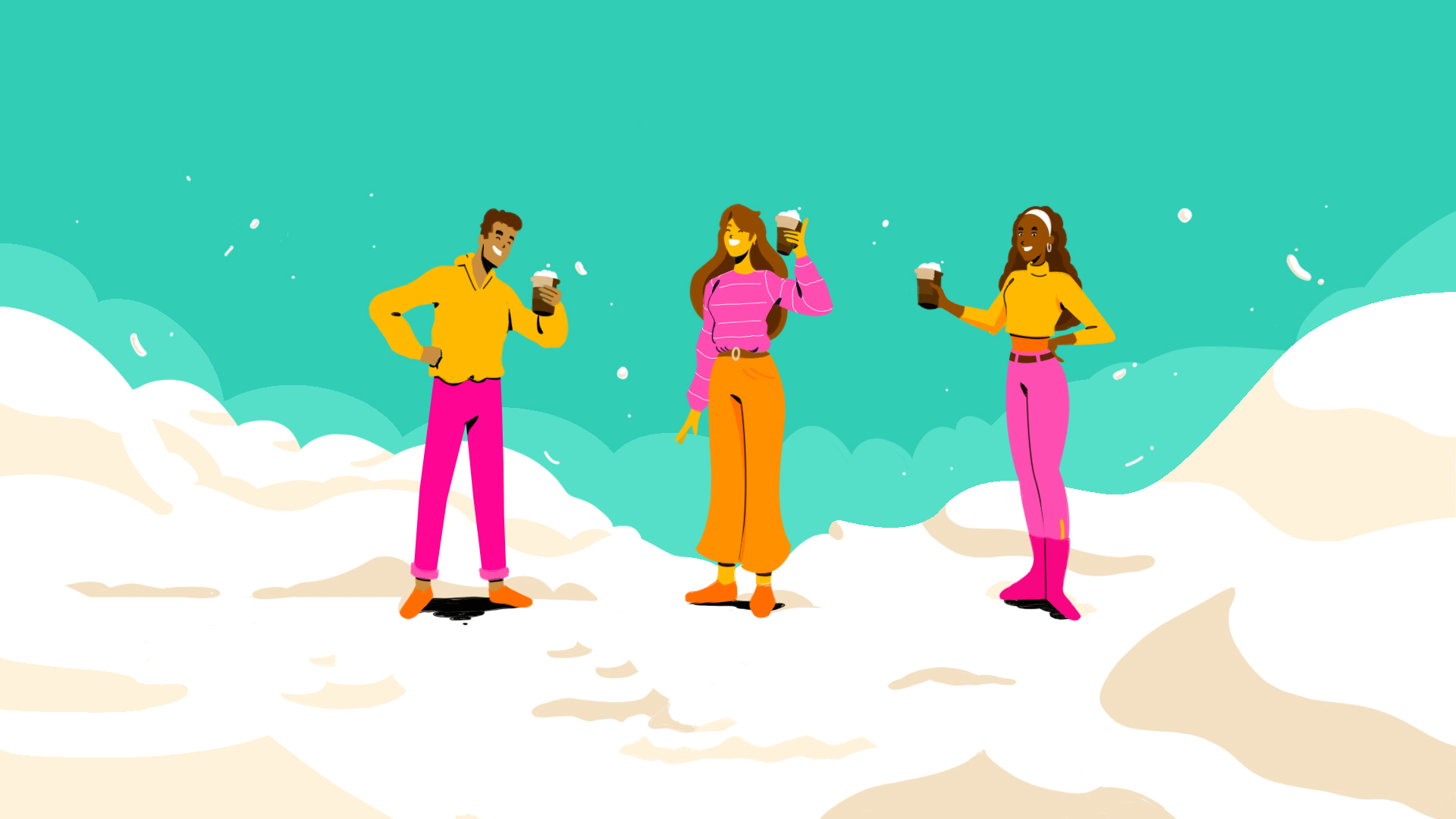 Ronda continues this approach to the Dunkin’ characters and style in the second spot for Cold-Foam, seamlessly transitioning into softer, rounded angles and fresh cool-tones.